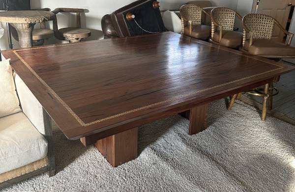 This is a statement-scale piece with incredible presence—ideal for a large dining room, winery tasting room, executive or conference setting, retail flagship, or hospitality space where craftsmanship and authenticity matter. Solid, grounded construction ensures stability and longevity in both residential and light commercial environments. Can sit 10-12 people easily