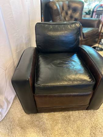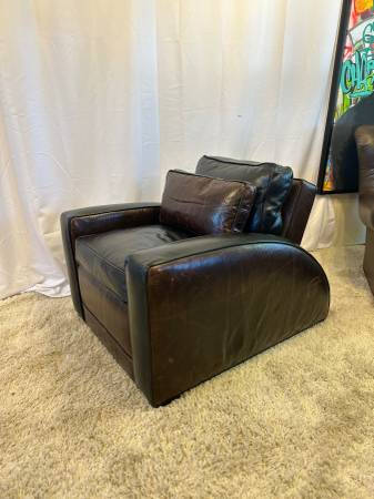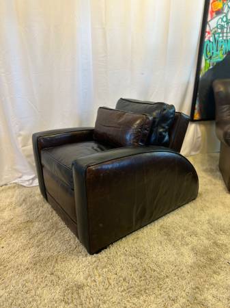 Vintage retro mcm mid-century modern fun unique living room accent armchair arm chair Donald deskey streamline modern tubular club cigar leather lounge