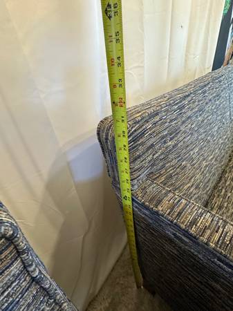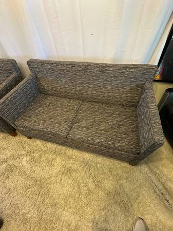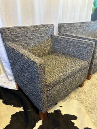 Both excellent pre-owned condition. No stains, rips, tears or smells. From pet and smoke free home. Viewing/ Pick up in Petaluma, Delivery is available for a fee. Clean lines, mid-century modern design. Blue multicolored fabric