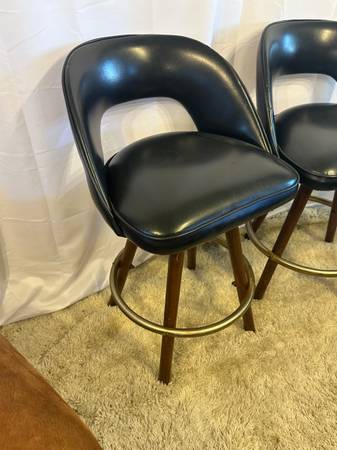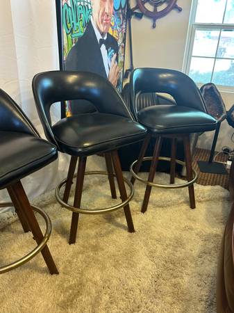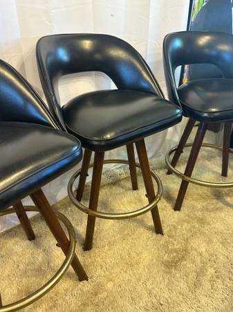 4 Mid Century Black Leather Counter Height Barstools 25” Seat Height...