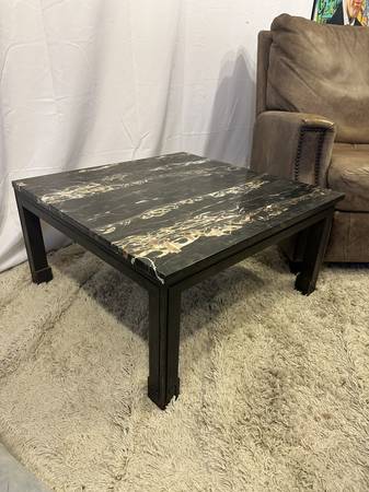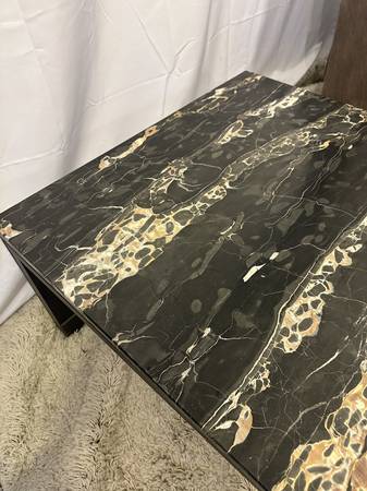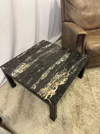 This marble is only quarried from one location on earth in Porto Venere. The marble top is set on top of the wood frame and can be moved separately.