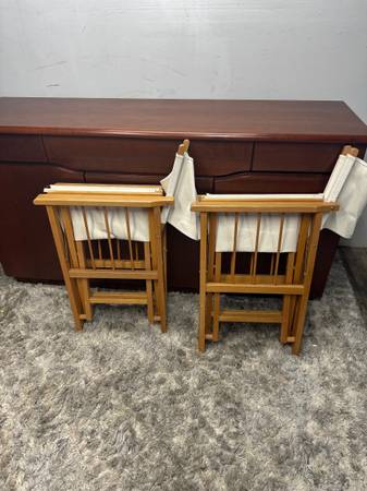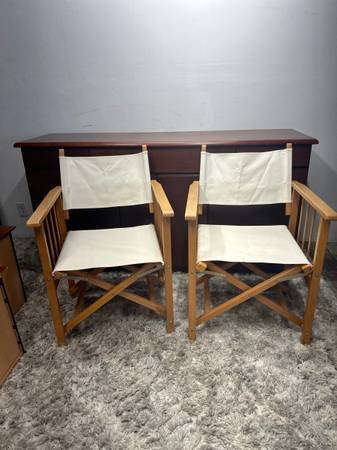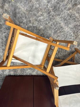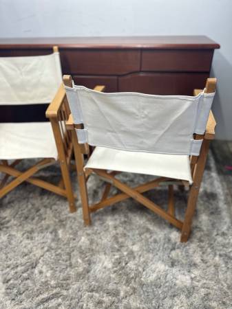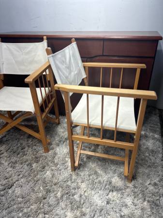 Pair of Vintage Folding Director’s Chairs Teak Blonde Wood & Canvas Danish Modern Accent Chair Set In nice condition and very sturdy A few light marks on white canvas Measurements in photos $250...