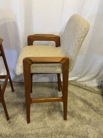 Pair of 2 Vintage Solid Teak Upholstered Bar Stools by Benny Linden...