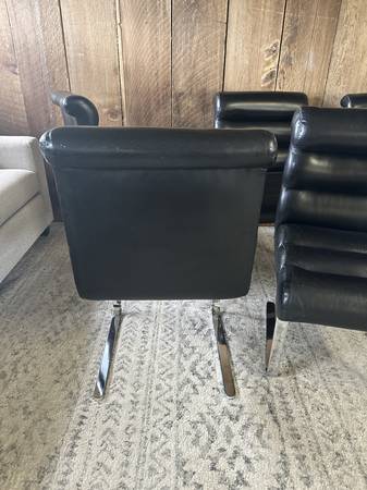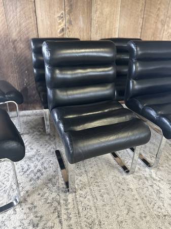 Iconic Preview Mid Century Vintage Black Genuine Leather Chairs Set of 6 - Rare Cantilever Dining