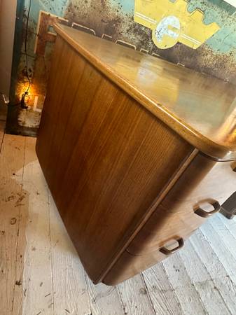 Top and sides are in fantastic condition for age. It has a few chips, one of the drawer front and a few other blemishes