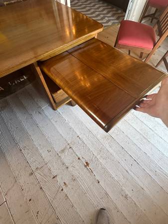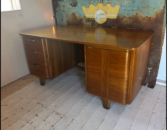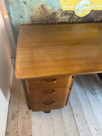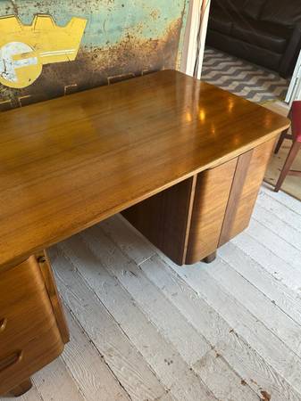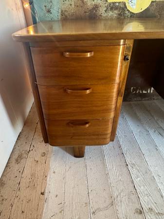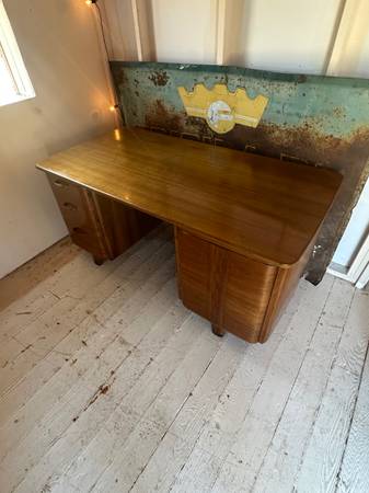Rare incredible desk, must see to appreciate. You will never see another one like this. Has mid century modern / danish modern and art deco styles and lines all in one.