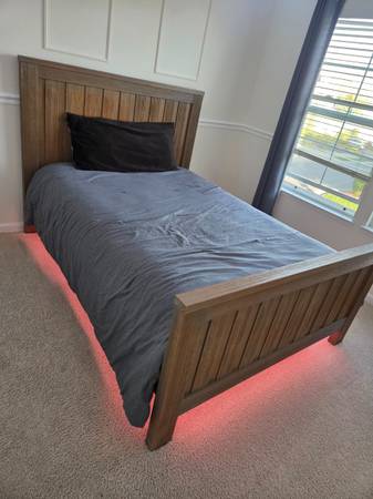 Restoration Hardware Laguna series teen bed full size. Mattress not included and post will be removed when sold.