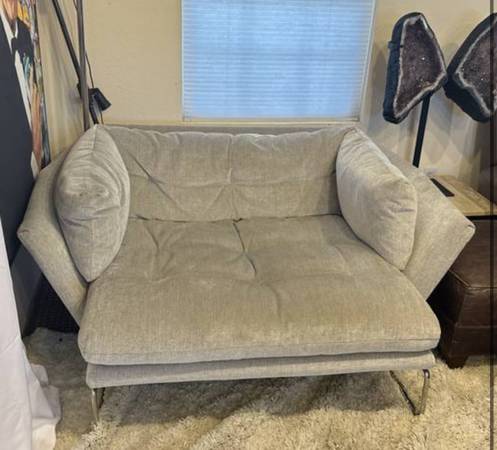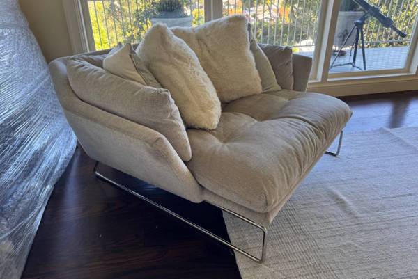 Saba Italia NEW YORK SUITE Gray Upholstered fabric lounge chair with armrests by Sergio Bicego Beautiful Double Chaise Lounge, great for reading or cuddling, room for two, maybe three depending what...