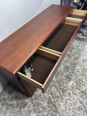 Dining buffet credenza storage chest of drawers mid-century teak mcm Made in Denmark cherry red brown
