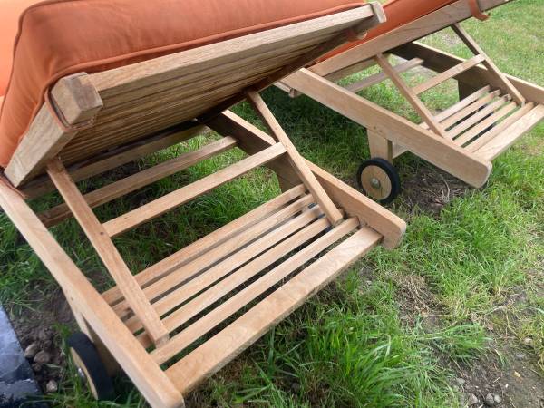 I have one left. Price is $500. From Terra Outdoor, Ventana "Elements" lounger in beautiful condition. Pull out cocktail tray, adjustable back and legs. Comes with orange cushion....