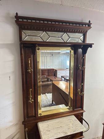 Vintage Edwardian Style Hall Tree/Umbrella Stand with Mirror / Entrance Table / Foyer Table