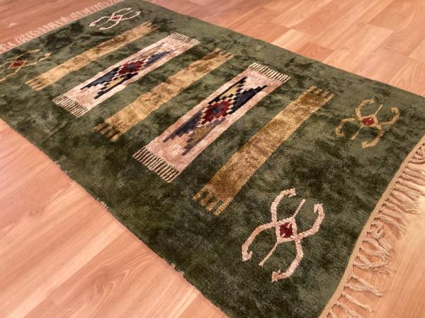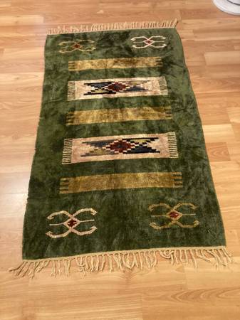 Vintage. 52"x29" Handmade in Pakistan according to the experts. Heavy, handwoven and very soft rug, in lovely condition.