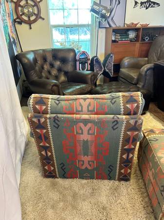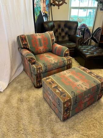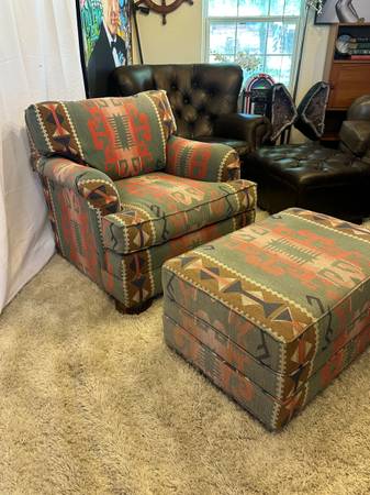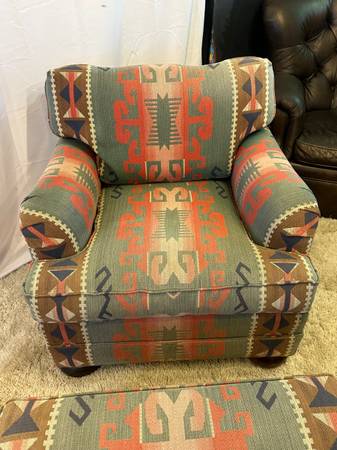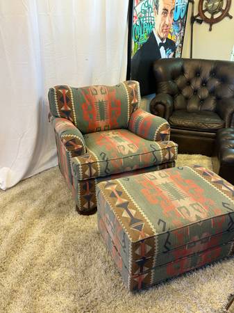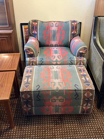 Vintage Upholstered Southwest Aztec Armchair with Ottoman Bohemian -...