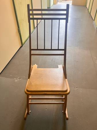Unusual fold up, rocking chair, completely refinished, new hardware. Excellent condition.
