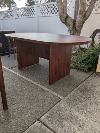 Available for immediate pickup is a heavy, sturdy wooden conference table in excellent condition. This piece features a professional matte brown finish and has never actually been used—it has only been kept in storage. Perfect for a home office, a startup workspace, or a collaborative meeting area.