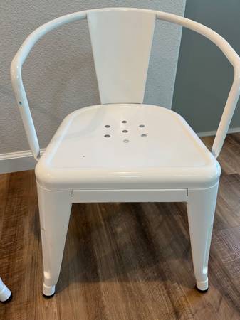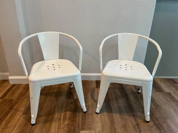 Some wear and tear, but structurally sound. Create the perfect space for your little one to draw, color and more with the Industrial Activity Chair from Pillowfort™. With a powder-coated steel frame for lasting use and floor protectors to help prevent your wood or tile from getting scratched, this kids armchair will make a practical addition to any home. Thanks to the stackable design, you can have a few of these chairs out for arts and crafts time and then easily stack them up and store them in the closet when not in use.