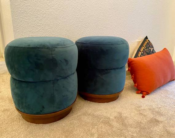 Beautiful velvet ottoman with large rounded channels, a solid wood base, and firm foam padding. Excellent condition, like new. Orig. $199. $90 each or both for $150.
