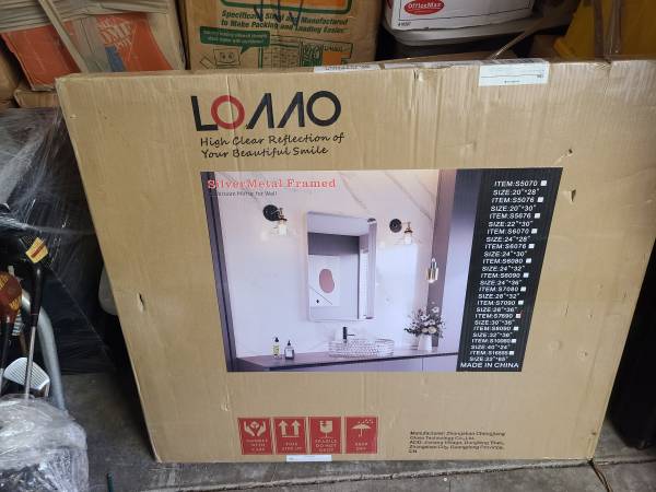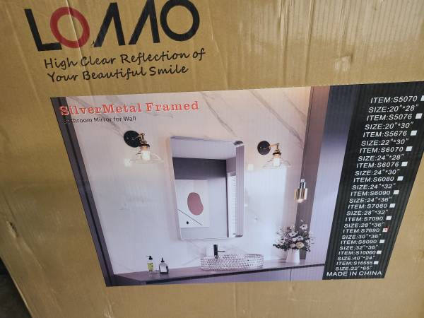 Selling a brand new in box silver framed bathroom mirror from Loaao. Bought new from target and never used.