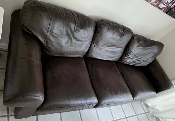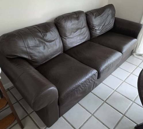 Beautifull Leather Sofa Couch in dark bronw color. Pebble leather. Used but not abused. I can help with delivery for $100-$200