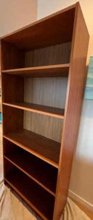 Tall wooden bookshelf with multiple shelves. $80 or best offer
