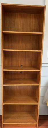 Tall wooden bookshelf with multiple shelves. $80 or best offer 70" H x 24" W x 12" D