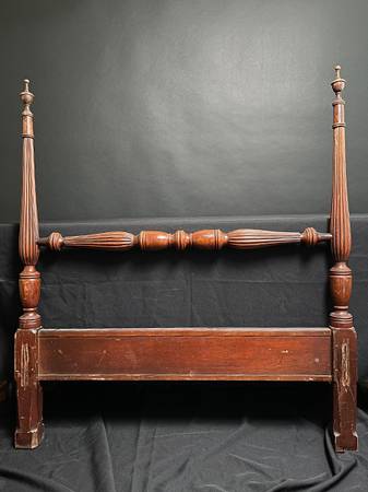 This is a standard-size twin bed with the box spring, but no mattress. The dimensions are 43” wide X 82” Long.