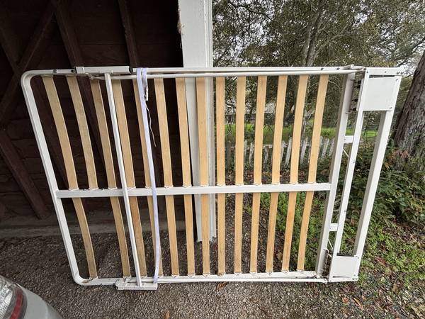 It has one missing section as a plastic board holder went missing in move but it is in the foot area so not noticable during sleep. I have all the parts, currently in garage mostly assembled. measures 59" x 80"
