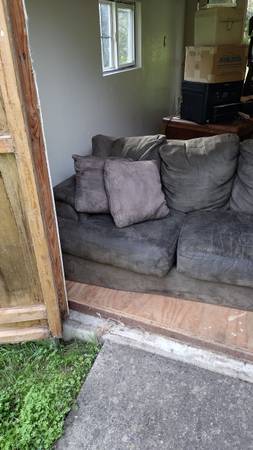 Comfortable green sofa in very good condition. The material is a faux suede. I used this couch for many years in my office and enjoyed many naps when working got to be too much. There are no tears,...