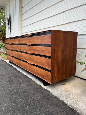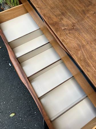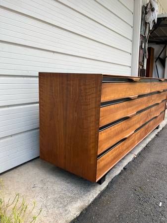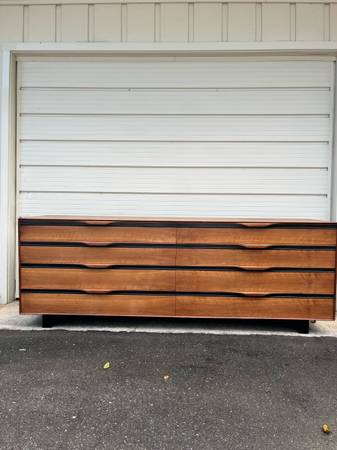 This is a fantastic large roomy 8 drawer walnut dresser designed by legendary designer John Kapel for Glenn of California. The drawers on this dresser are super smooth bearing steel glides that operate as they should. All the drawers have adjustable dividers. It measures 83” long, 20” deep and 30” tall. A beautiful large dresser.