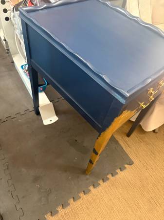 Navy blue and gold with butterflies. If not interested the butterflies can come off. DIY Project love doing them. Then when completed I enjoy then until someone else does.