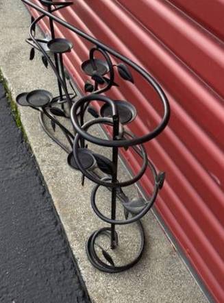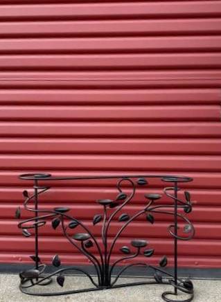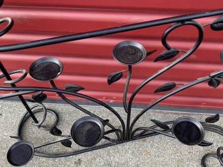 Large floor standing Fireplace wrought iron candle holder/ candelabra/ screen with 6 platforms surrounded by climbing vines and leaves to create your candle garden with votive, pillars, wax or LED candles. Dimensions: 27"long, 17.5" high 8.5" wide. In excellent condition.