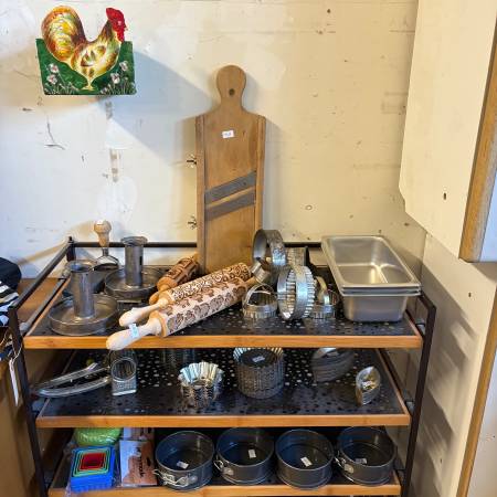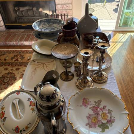 Huge awesome sale! So many lovely items! Where do we start? Beautiful MGM vintage glassware, Lalique, pie safe, rare rose bushes, high end ceramic pots, lovely copper, chocolate molds, Riedel new in box, planters, cookware, gold flatware sets, jewelry, sterling, too much to list.