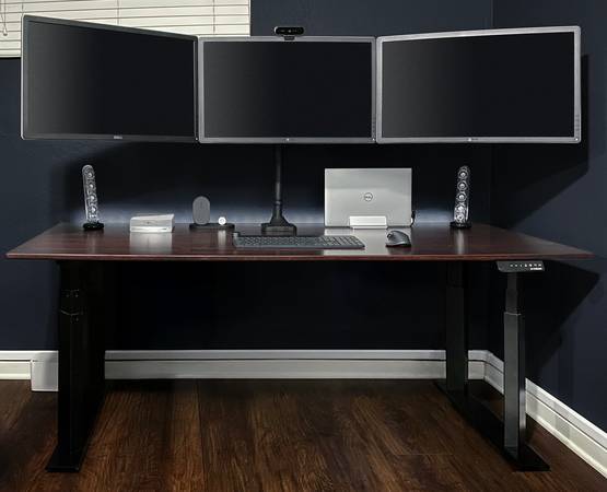 • 72x23 wood-top workbench with metal legs, includes attached AC adapters