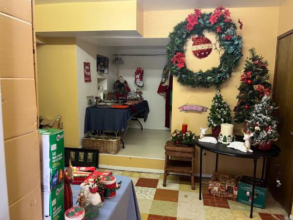 Tons and tons of linens, towels, sheets, beautiful table, linens, tablecloths blankets, women’s clothing shoes, men’s clothing, purses, hats, and more!