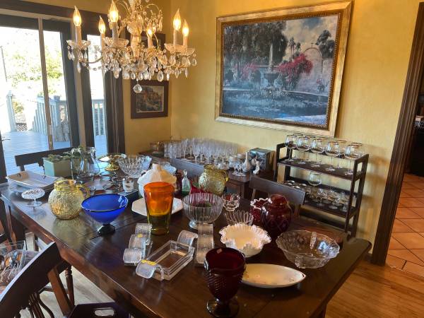Very large home with a huge variety of inventory. Located on top of the hillside. We will provide a shuttle to bring you and your purchases safely up and down the driveway. Beautiful view and beautiful inventory! You won’t want to miss this sale.