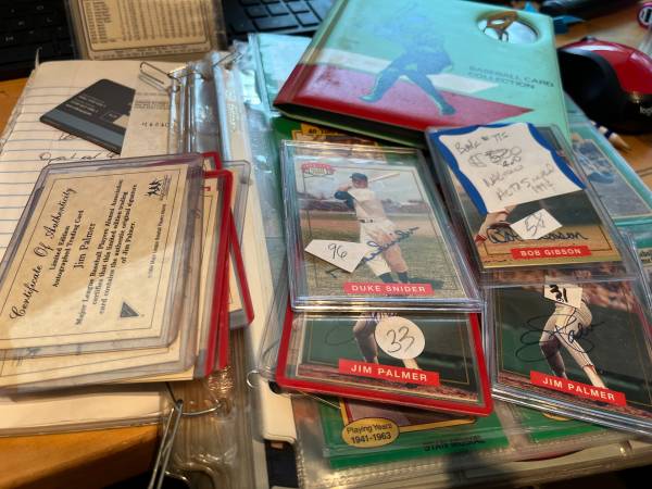 Eck,Koufax,Henderson,Mac,Ryan,Jetter,ARod, Thomas a few Mays, both Jacksons, Zito--all the rest as well 5000 giants,3000 As 2000 each Dodgers, yanks mets,red sox ABOUT 5 CENTS EACH ; in San Rafael this week Also about 19 wax boxes andcomplete and partial sets from 1972 on plus 600 loose packs . WAX BOXES. Fewer Basketball and Football Cheaper s offers at 30 % of those prices are probably fine. show contact info
