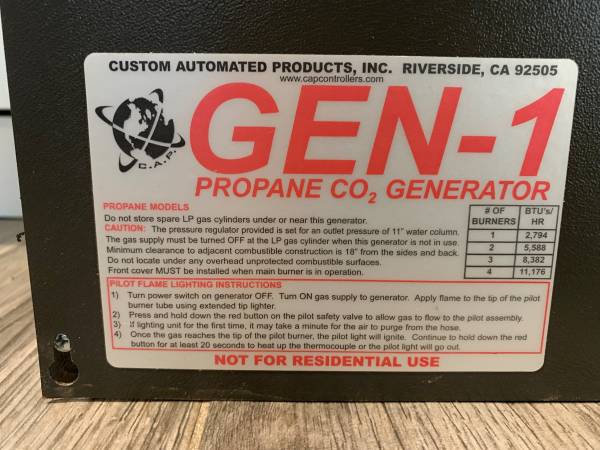 -CO2 Generator, Custom Automated Products GEN-1, 4 burner propane, never used