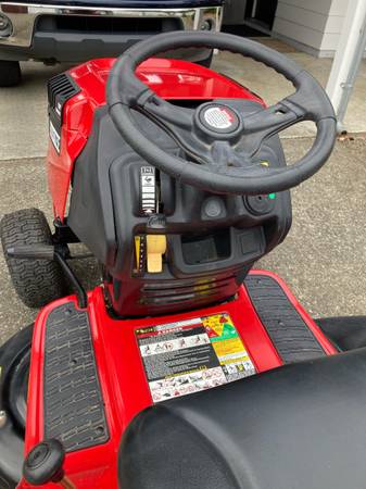 Huskee LT4200 lawn tractor,2018, in very good condition, low hours 17.5 Hp, Briggs& Stratton engine, 7 speed transmission, 42” cutting area, with grass catcher and lifting tools