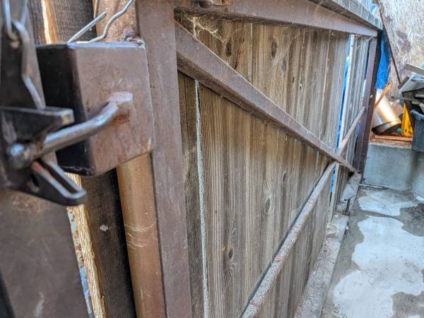 We have just removed this heavy duty. 10-ft 4-in metal gate. It also has a 36-in walk-through gate.