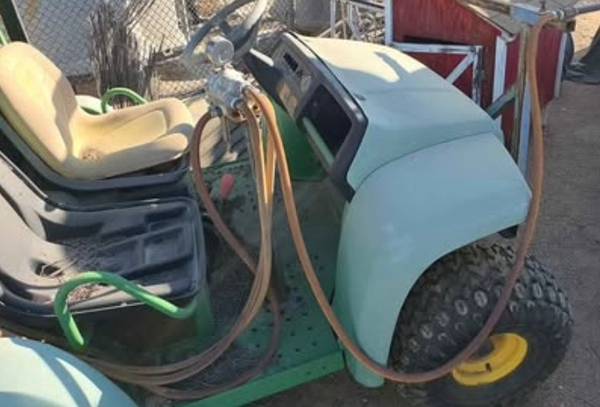 has driver hand controls for boom setup and also a hose reel with long hose for hard to reach garden crops or trees on the farm