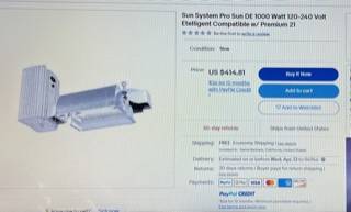NEW IN BOX INDOOR GROW LIGHT SUN SYSTEM PRO SUN DE 1000 Watt 120-240 Volt