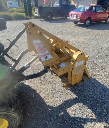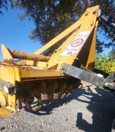 Excellent condition rototiller that is a class 1, 3pt mount on to your small tractor. Tines show almost no wear. I have owned it 6 years and only used it 4 times. We have gone a different direction with our property and will not be needing it. It is on the tractor now for demonstrations. I can help load on your trailer.