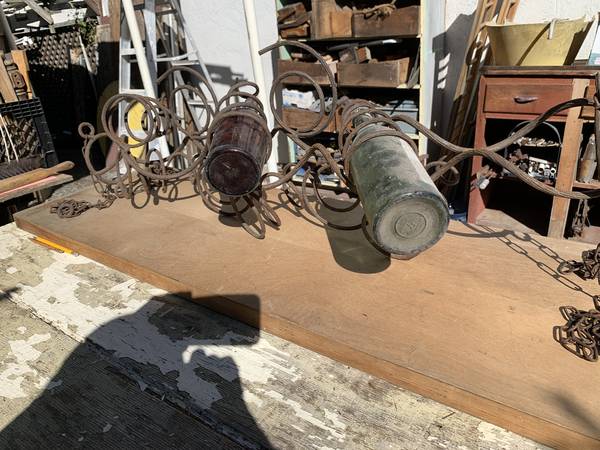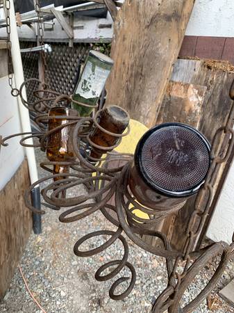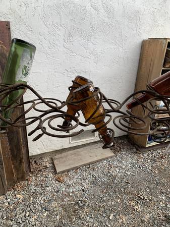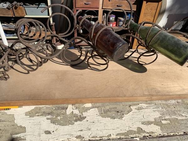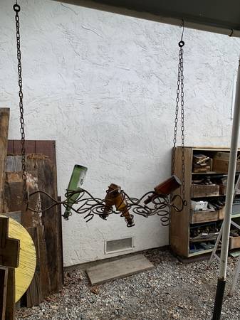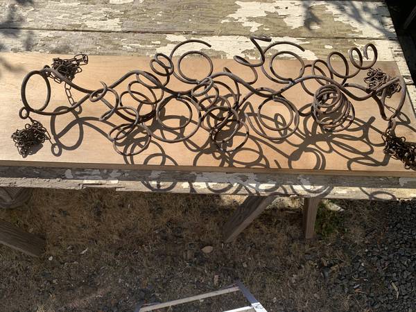 Metal grapevine art / bottle holder * 36 wide * hangs by 4 chains