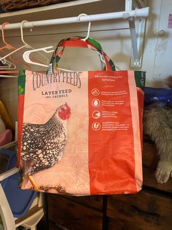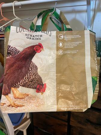 These are bags made by myself and a good friend out of feeder bags. Very cute and fun We have some ready to go now and taking orders as well. Get them while we have them!!