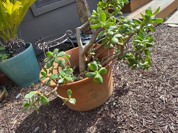 Very healthy Jade plant in terra-cotta planter, measures approximately 3 feet tall. Contact .