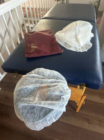 Beautiful massage table, easy set up, with head cradle Comes with pad and covers for head rest Call or text Carolyn 4one5-8one2-3187