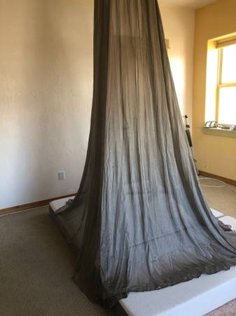 Note: The Dream Canopy has not been used. It was purchased then I moved to a different location and no longer needed it. The picture with the bed is from the website: lessemf.com/product/dream-canopy/