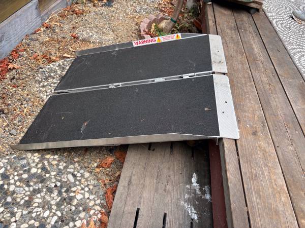 Portable Ramp in Good condition, folds down with handle Measures 3 ft long x 30 inches wide. Contact