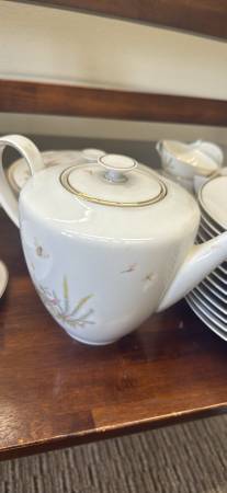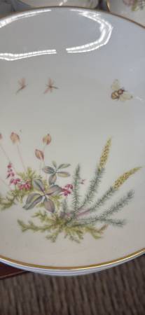 Vintage Hutschenreuther Bavaria porcelain dinnerware with wild flower and insects motif. I am counting 99 pieces, only one flee bite. Set includes coffee pot, sauce boats, dinner, dessert, soup,...