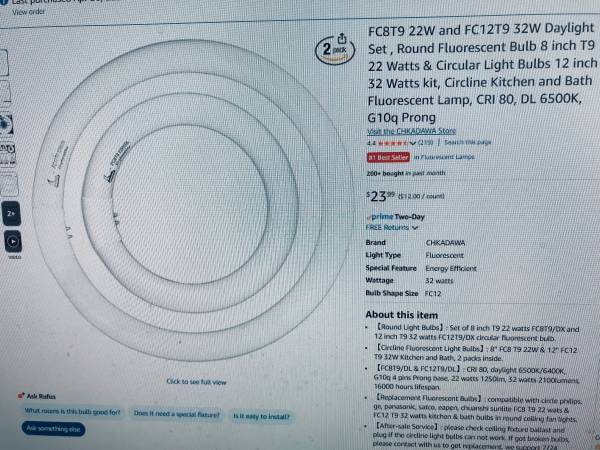 Comes with two round fluorescent bulbs In each. $25 per light. Bulbs working when we took them down.